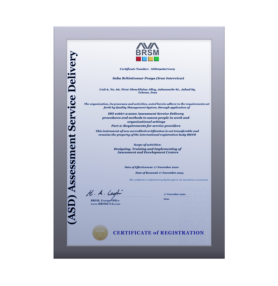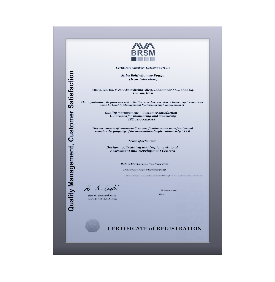 استقرار سیستم مدیریت ارزیابی افراد (کانون ارزیابی و توسعه) – ایزو ۱۰۶۶۷