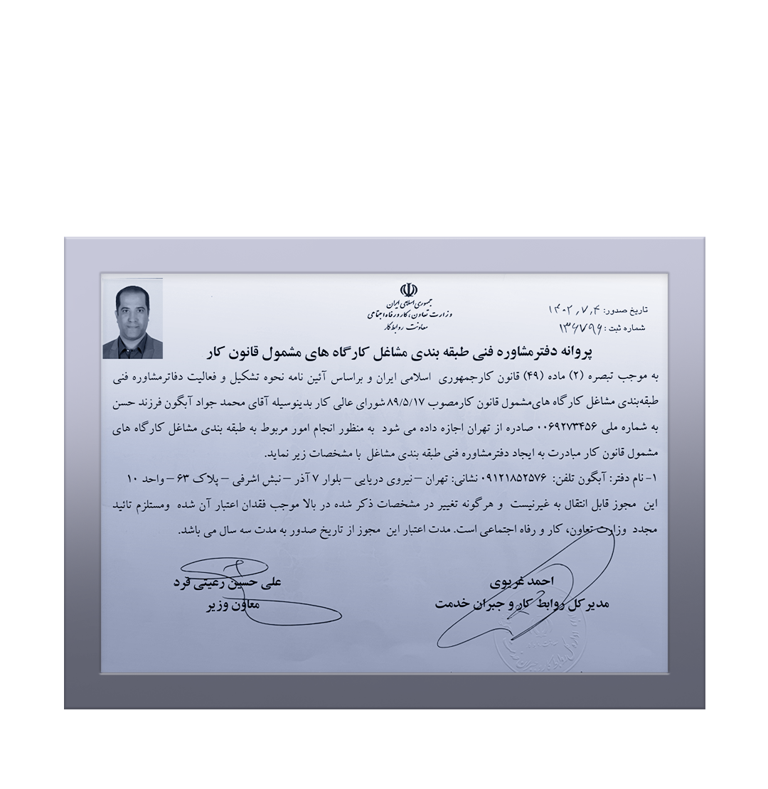 پروانه دفتر مشاوره فنی طبقه بندی مشاغل